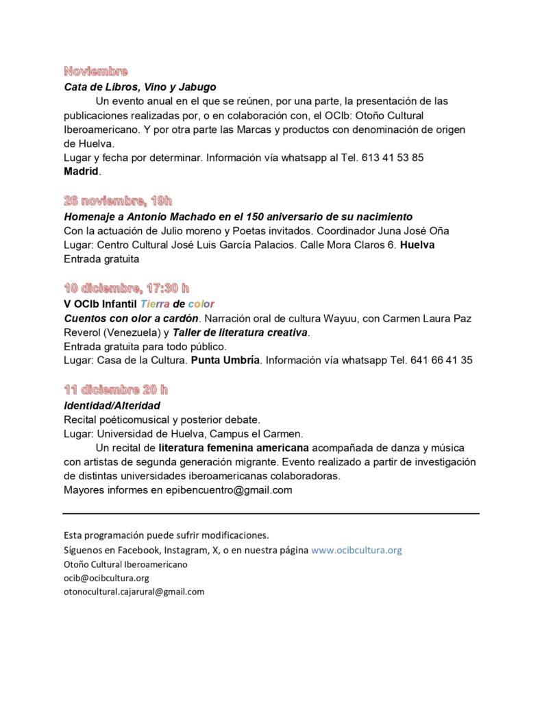 Fecha: por determinar 4 o 5 de noviembre
