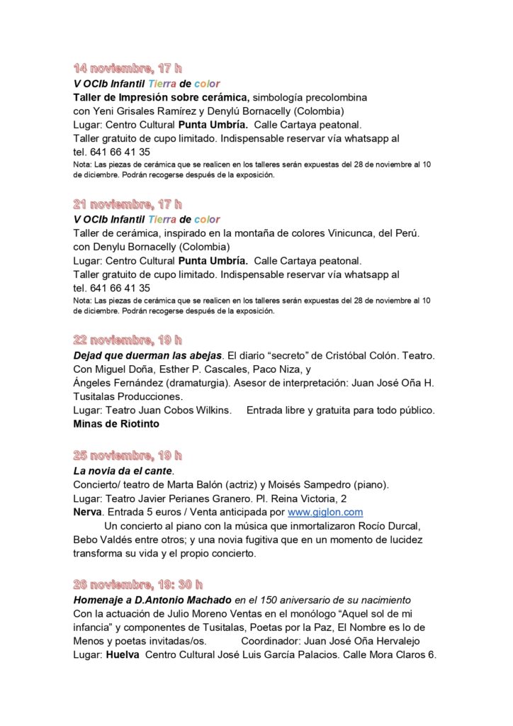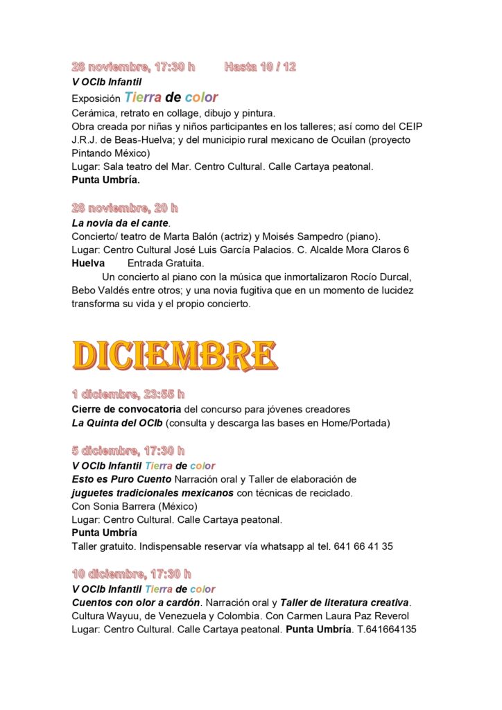 Un evento que se realiza todos los años en el que se reúnen, por una parte la presentación de las publicaciones realizadas por o en colaboración con el OCIb, Otoño Cultural Iberoamericano; y por otra parte las Marcas y productos con denominación de origen de Huelva.
